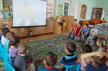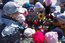 В нашем саду ведется активная работа к подготовке к 70-летию Великой Победы. Дети учили стихи, песни, готовили танцы для гостьи, которую мы пригласили к себе на утренник. А нашей гостью стала Альфия Гарифулловна, первая заведующая детского сада, она является труженником тыла,и вдовой Ветерана Войны. Гостья рассказала детям о трудном военном детстве и выразила слава признательности коллективу детского сада за приглашение.
