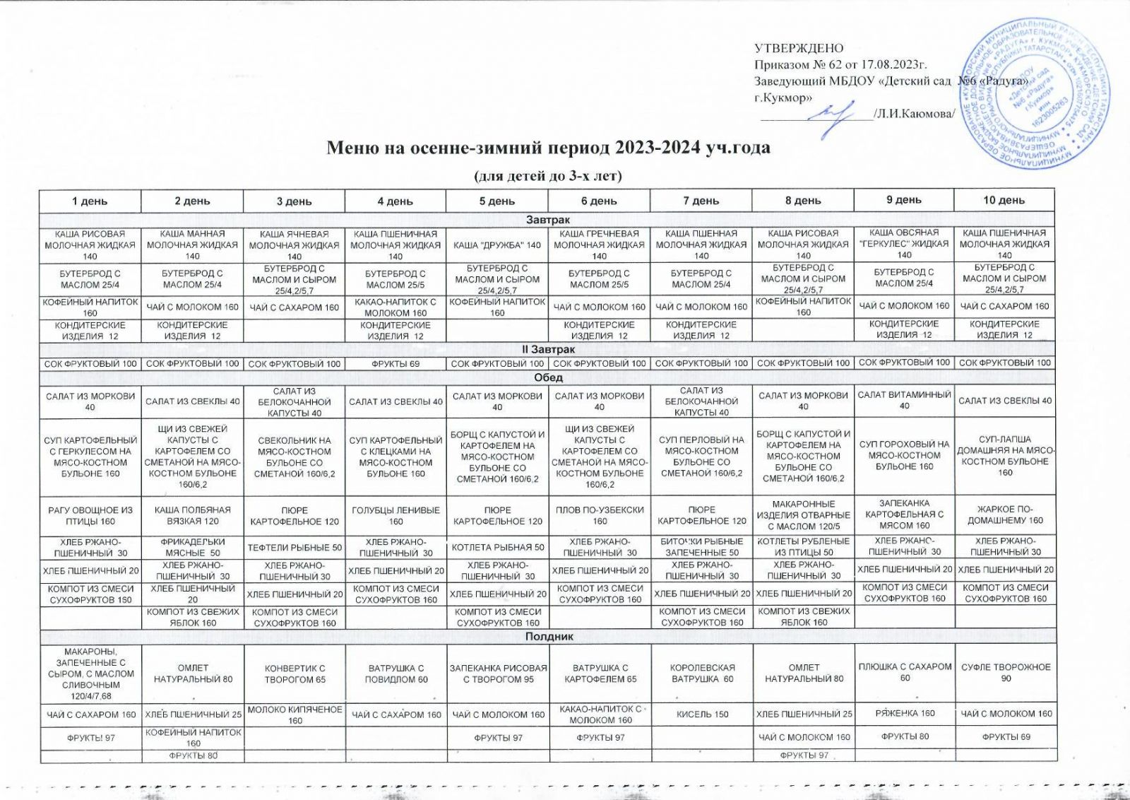 Среднесуточные наборы пищевой продукции для детей до 7-лет