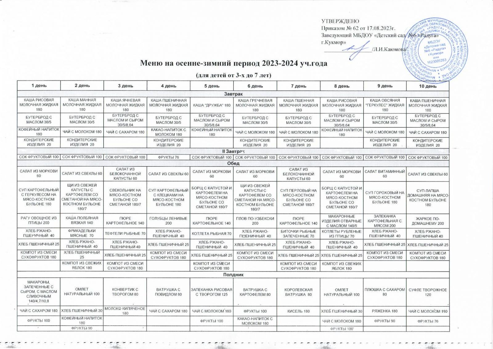 "Услуги по организации питания в дошкольном учреждении" в 2024 году осуществляет в соответствии с муниципальным контрактом № 68-ЭА-4 от 08.01.2024г. Кукморский районный потребительский кооператив. Юридический/фактический адрес: 422110, РТ, г. Кукмор,ул. Пушкина, д.33. Председатель правления Галиева Василя Хайдаровна. Контактный телефон: 89600550920.