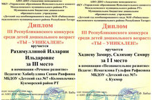Поздравляем воспитанников подготовительной группы Хадиева Замира, Салихова Самира (рук.Исмагилова Г.Р.) и Рахимуллину Илларию (рук.Хабибуллина С.Р.) с призовыми местами в Республиканском конкурсе "Ты - уникален!"