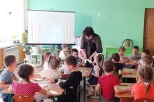 Кечкенәләр төркемдә "Куркынычсызлык әлифбасы" тематик атнасы кысаларында "Юлга кара һәм бәхетсезлеккә дучар булма" дигән темага ачык интеграль белем бирү чарасы үткәрелде. Дәрестә Елена Владимировна Яковлева - "Юл куркынычсызлыгы" профилактикалау бүлегенең Кукмара бүлеге начальнигы бар иде. Чара ахырында ул балалар белән әңгәмә корды һәм бүләкләр тапшырды.