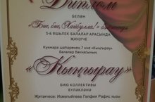 Казанда нәшер ителүче "Сәхнә" журналының юбилеена багышланган хәйрия концертында "Салават купере" журналы оештырган бәйгеләрендә катнашкан балалары бүләкләрделәр. Алар арасында безнең балалар бакчабызның Гөлфия Исмагыйлева җитәкчелегендәге бию коллективы "Бие, бие, Хайбулла" бәйгесендә җиңү яулап, синтезатор һәм диплом белән бүләкләнде. Котлыйбыз!!!
