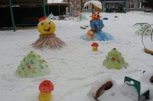С 10.12. - по 20.12.2017г. в детском саду был объявлен конкурс «Снежный дизайн зимних участков». Воспитатели с детьми и их родителями устроили настоящий сказочный городок. Сказочные герои из снега получились очень оригинальные и красочные. Все участники награждены грамотами.