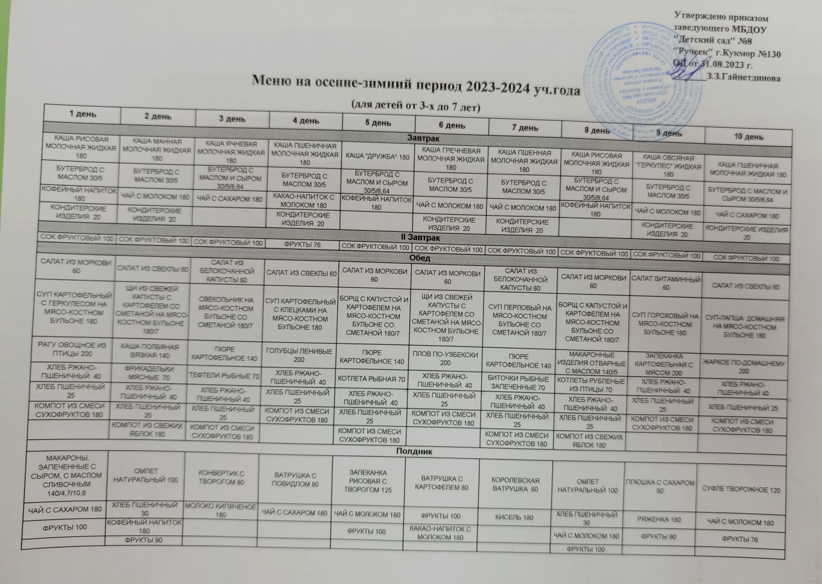 Меню на осенне-зимний период 2023-2024 учебного года/ 2023-2024 нче елның көзге-кышкы чорына меню