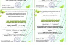 Коллегаларыбызны методик эшләнмәләр, НОД конспектлары, сценарийлар, дидактик уеннар һәм экологик тәрбия буенча кулланмалар республика конкурсында яхшы нәтиҗәләр белән котлыйбыз. -