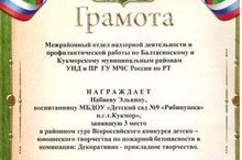 Прошел районный тур Всероссийского конкурса детско-юношеского творчества по пожарной безопасности "Неопалимая Купина". Воспитанница нашего детского сада Эльвина Н. заняла 3 место. Поздравляем!!!