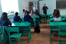 Мәктәптә өлкән сыйныф укучылары белән профориентация эше актив алып барыла. Бүген өлкән сыйныф укучыларының безнең мәктәп чыгарылыш сыйныф укучысы Шәйдуллин Алмаз белән бик кызыклы очрашу булды. Алмаз Бөтенроссия дәүләт юстиция университетының 2 нче курс студенты, хокук саклау эшчәнлеге факультетында укый. Очрашу бик җанлы узды, балалар Алмазның уку үзенчәлекләре һәм булачак һөнәре белән кызыксындылар, үзләрен кызыксындырган сорауларга җаваплар алдылар.
