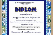 Поздравляем ученика 9 класса Хайруллина Разиля с 1 местом на в Международном спортивном конкурсе "Остановись, мгновение", в номинации "Лучший бросок в кольцо". С первых же уроков по изучению бросоков мяча в корзину Разиль отличался от своих одноклассников уникальной спосбностью к точным броскам, особенно результативнми были дальние броски. Под руководством учителя физической культуры Губайдулиной Л.А. они приняли участие в Международном конкурсе, сняв видеоролик лучшего броска в корзину - и вот результат -1 место! Поздравляем!!!