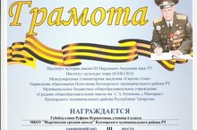 Манзарас урта мәктәбендә Советлар Союзы Герое Әхтәмов С. А. истәлегенә багышланган "Йөрәк хәтере" IX Республика фәнни-гамәли конференциясе узды.. Безнең мәктәпнең 6 сыйныф укучысы Гобәйдуллина Руфина конференциядә катнашты. "Сугышта беткән балачак"номинациясендә ул үзенең апасының тарихын сөйләде. Конференция ЗУМ платформасында узды, Руфин нәтиҗәләре буенча 3 урынны яулады. Аны бу нәтиҗә белән котлыйбыз.