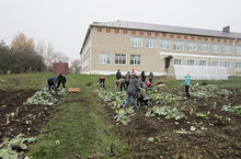 Сегодня учащиеся 8,9,10-ых классов собрали капусту с пришкольного участка.