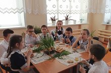 4 нче сыйныф укучылары үзләре үстергән суган кыягыннан авыз иттеләр. -