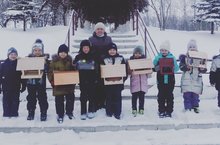Учащиеся 1 класса смастерили для наших крылатых друзей кормушки и разместили их на деревьях.