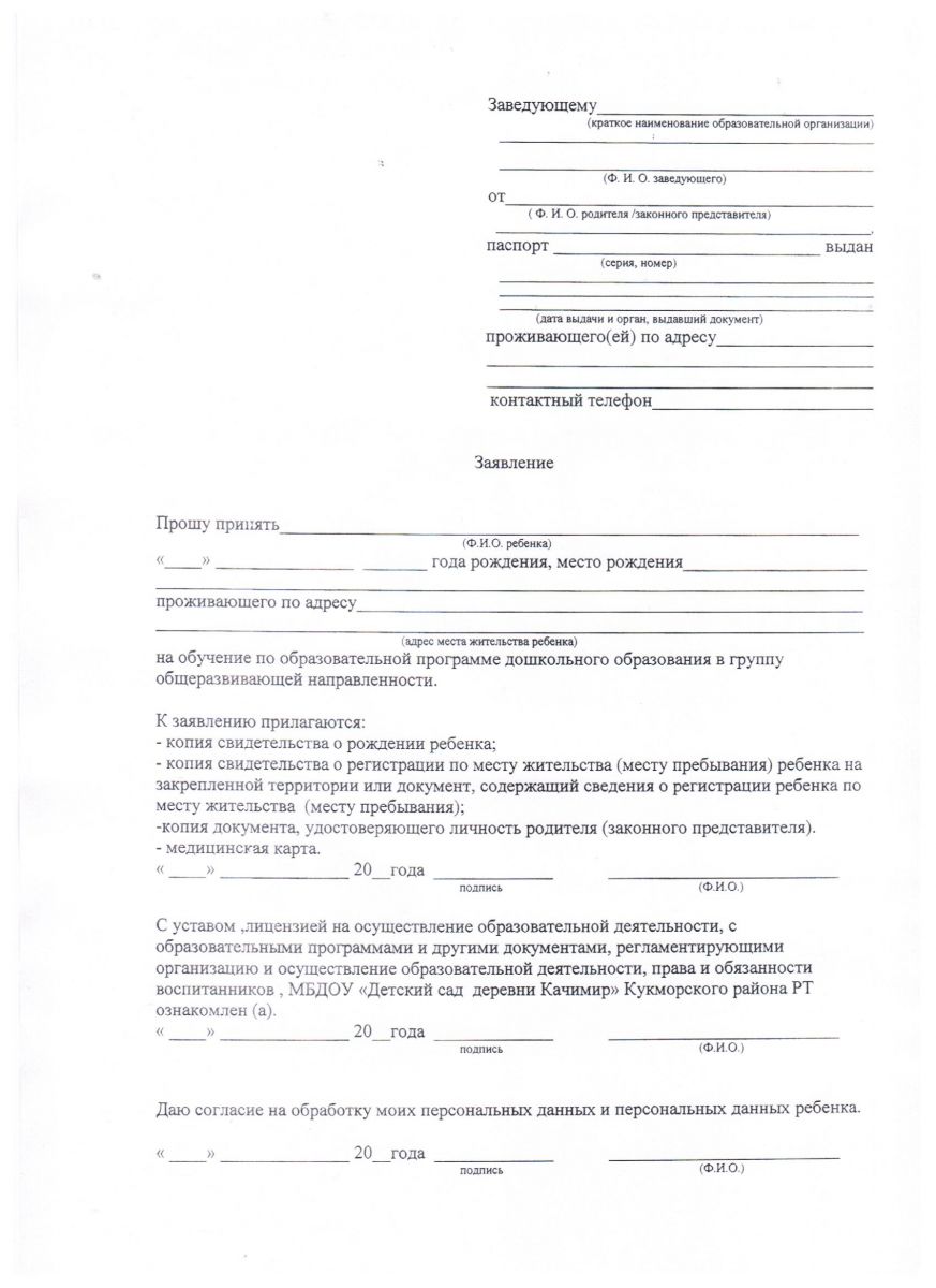 муниципальное бюджетное дошкольное образовательное учреждение "Детский сад деревни Качимир" Кукморского муниципального района Республики Татарстан