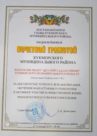 муниципальное бюджетное дошкольное образовательное учреждение "Детский сад деревни Качимир" Кукморского муниципального района Республики Татарстан