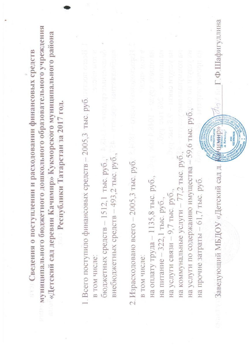 Сведения о поступлении и расходовании финансовых средств за 2017 год
