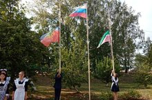 5 сентября на школьной линейке прошло торжественное поднятие флагов Российской Федерации и Республики Татарстан. За достигнутые успехи, Губайдуллин Ислам и Рахимова Айзира удостоились чести поднять флаги.