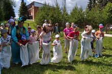 Бүген Кәркәүч мәдәният йорты янында балалар сабантуенда балалар рәхәтләнеп ярышларда катнаштылар.
