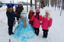 Первыми на строительство снежного городка вышли ученики 1-4 классов.