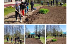 В рамках конкурса Министерства экологии "Эковесна-2023" учащиеся школы привели в порядок цветочные клумбы