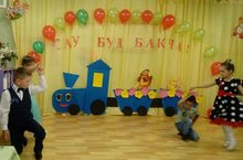 Сегодня в нашем детском саду прошел выпускной утренник. В празднике дети показали все свое мастерство: танцевали, пели, художественно читали стихи. В конце праздника воспитатели, родители и учитель начальных классов пожелали ребятам успехов и вручили памятные подарки/Буген безнең бакчада мәктәпкә китүче балаларның чыгарылыш иртәсе үтте. Балалар бәйрәмдә үзләренең бакчада өйрәнгән барлык осталыкларын күрсәттеләр: биеделәр, җырладылар, сәнгатьле итеп шигырьләр сөйләделәр. Бәйрәм ахырында тәрбиячеләр, әти-әниләр, балаларны 1 сыйныфка кабул итеп алучы укытучы аларга алга таба уңышлар теләделәр, истәлекле бүләкләр тапшырдылар.