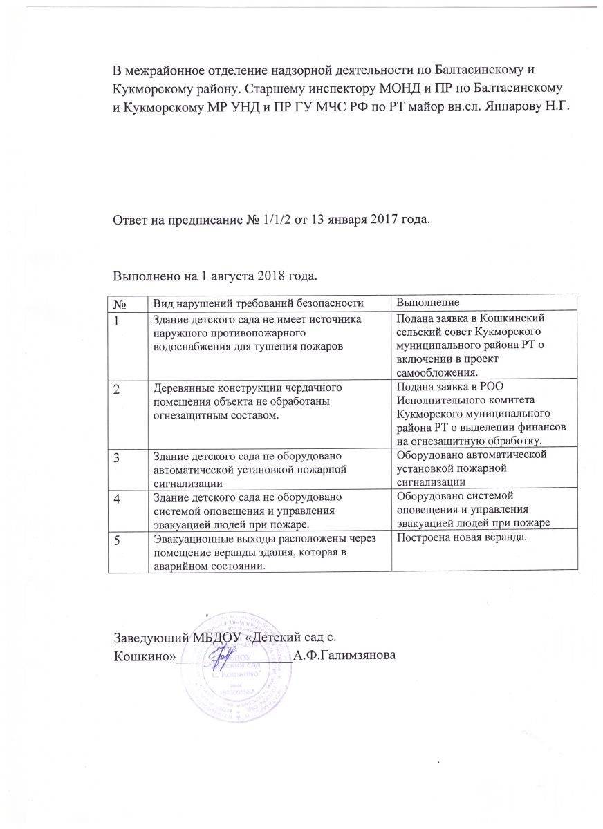 Предписание МОНД по Балтасинскому и Кукморскому муницыпальным районам