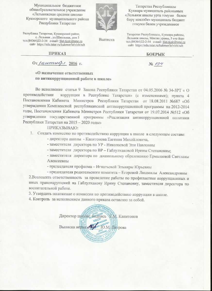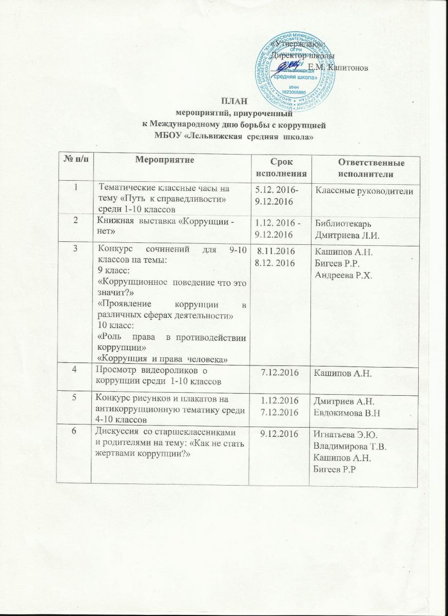6) Программа антикоррупционной деятельности в МБОУ СОШ с Лельвиж 2015-2020 гг