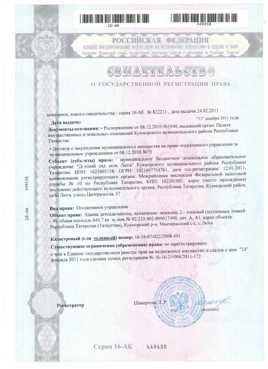 Короткое название: МБДОУ "Детский сад с. Люга" Кукморского муниципального района РТ