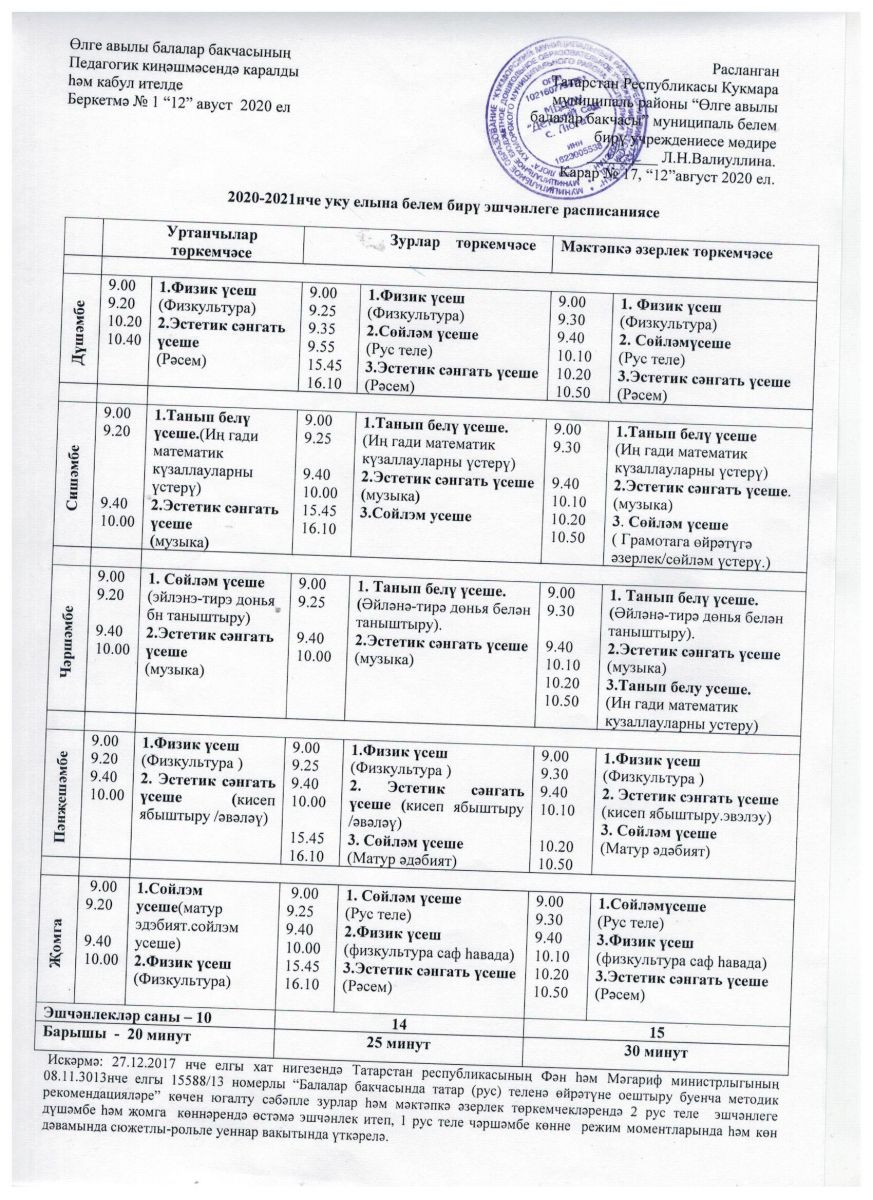 Белем биру эшчэнлеге расписаниясе 2020-2021 уку елына