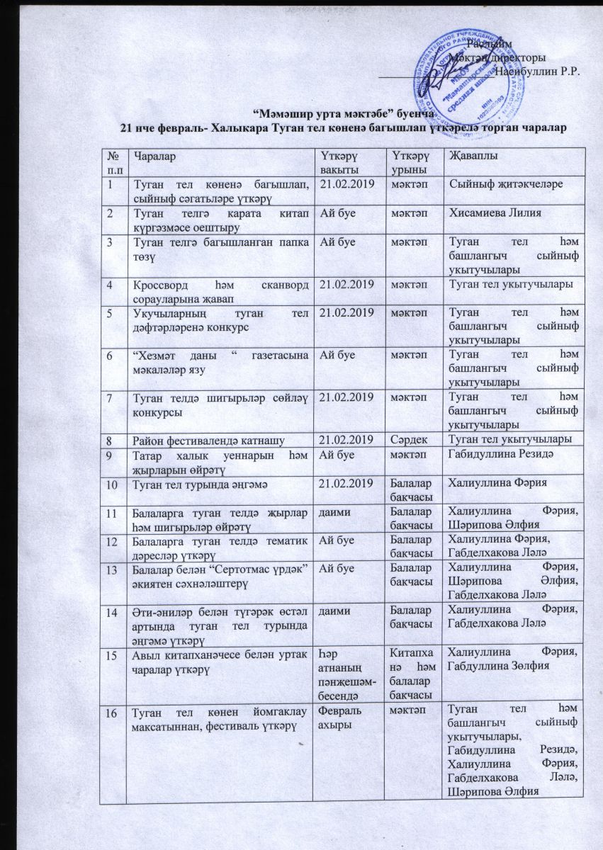 муниципальное бюджетное общеобразовательное учреждение "Мамаширская средняя школа" Кукморского муниципального района РТ Татарстан Республикасы Кукмара муниципаль районы "Мәмәшир урта мәктәбе" муниципаль бюджет гомуми белем биру учреждениесе - новости