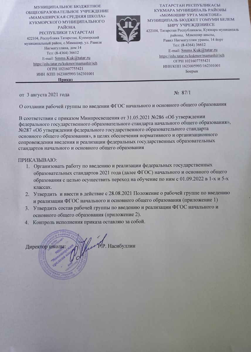 муниципальное бюджетное общеобразовательное учреждение "Мамаширская средняя школа" Кукморского муниципального района РТ Татарстан Республикасы Кукмара муниципаль районы "Мәмәшир урта мәктәбе" муниципаль бюджет гомуми белем биру учреждениесе