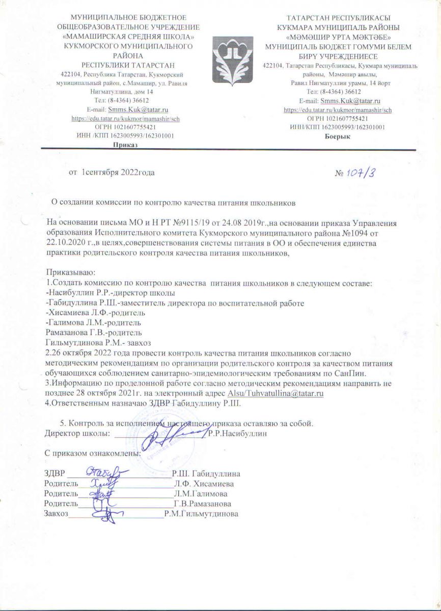 муниципальное бюджетное общеобразовательное учреждение "Мамаширская средняя школа" Кукморского муниципального района РТ Татарстан Республикасы Кукмара муниципаль районы "Мәмәшир урта мәктәбе" муниципаль бюджет гомуми белем биру учреждениесе