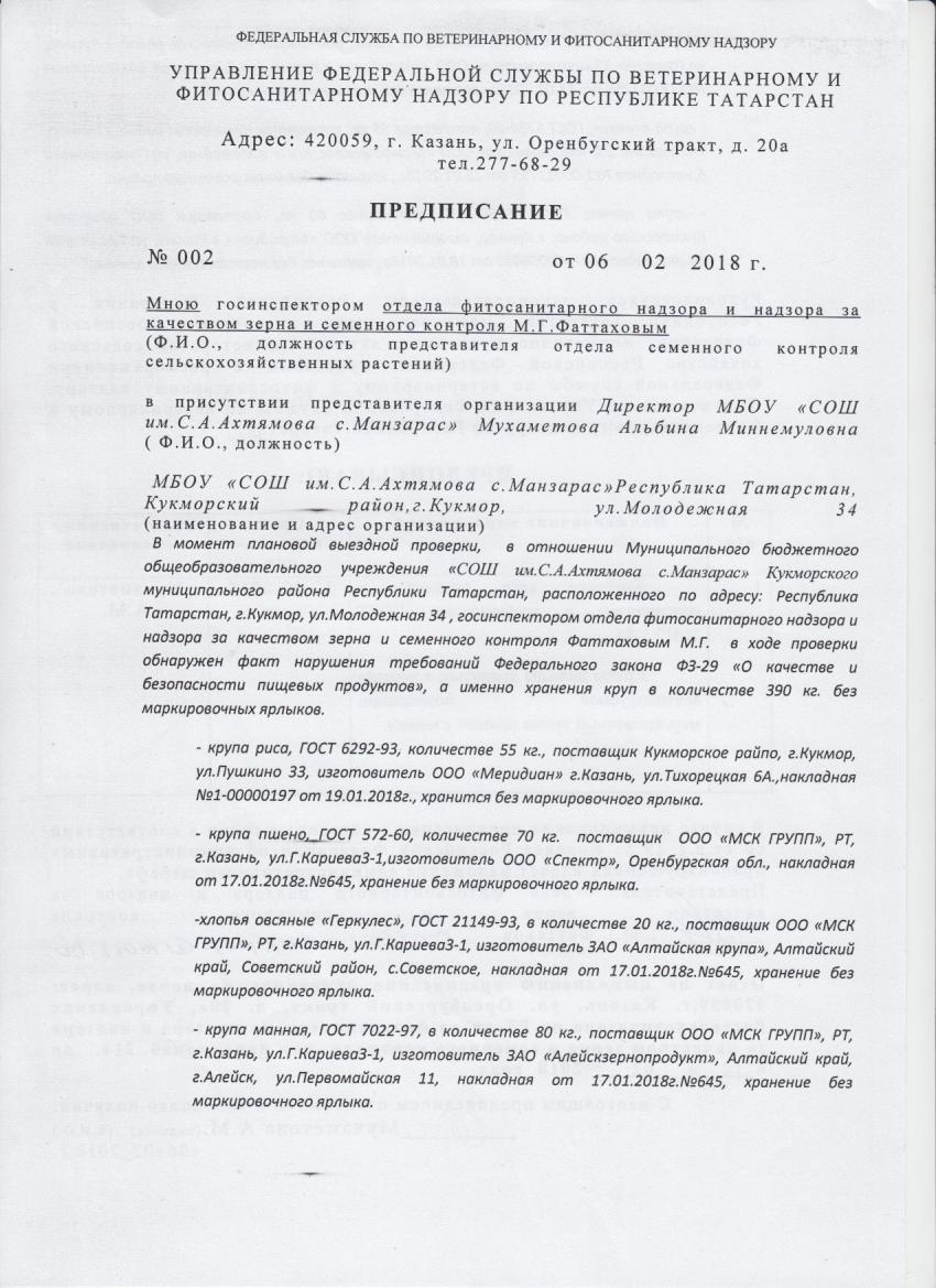 Предписания органов, осуществляющих государственный контроль в сфере образования