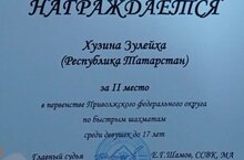 В турнире приняла участие и ученица нашей школы Хузина Зулейха, которая в Первенстве ПФО-2022 по быстрым шахматам в турнире среди девушек до 17 лет заняла второе место. -