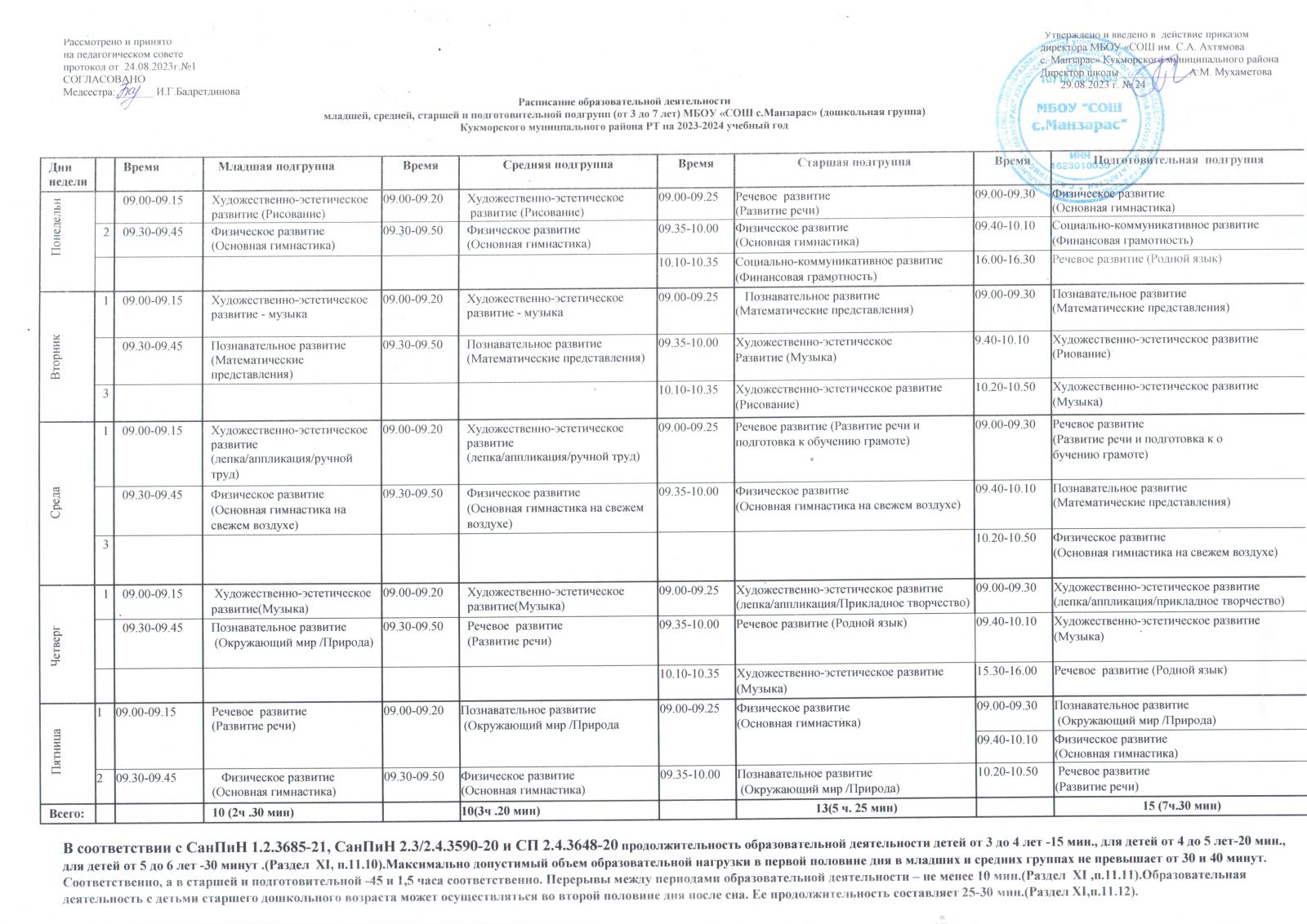 Расписание образовательной деятельности на 2023-2024 учебный год