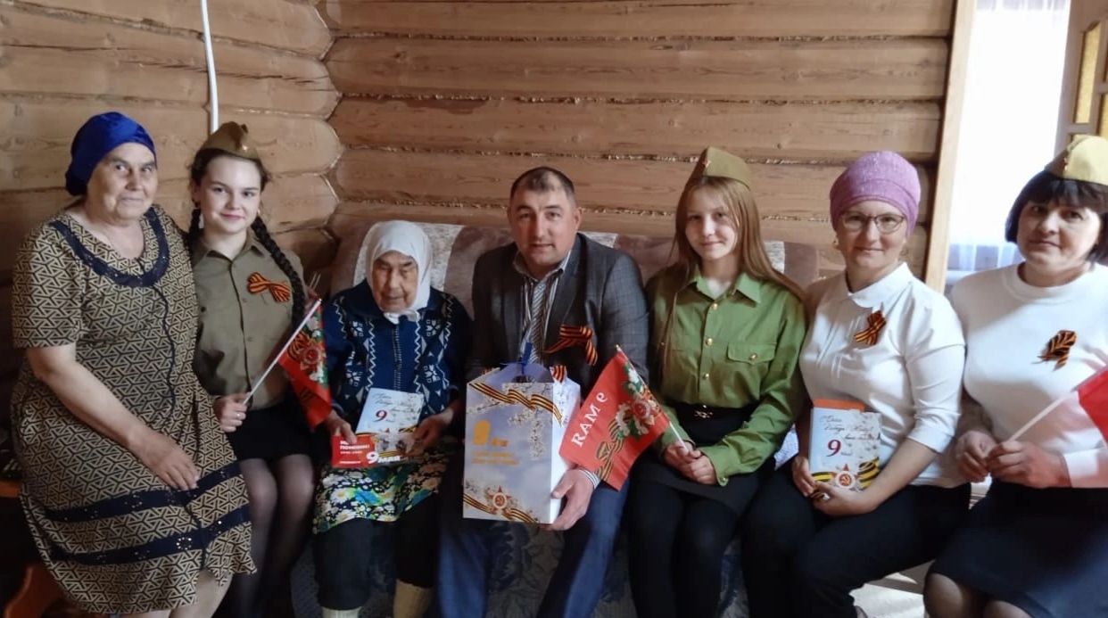 Авыл җирлеге башлыгы, мәдәният хезмәткәрләре һәм мәктәп укучылары белән берлектә тыл ветераннарын Бөек Җиңүнең 78 еллыгы белән тәбрикләде.