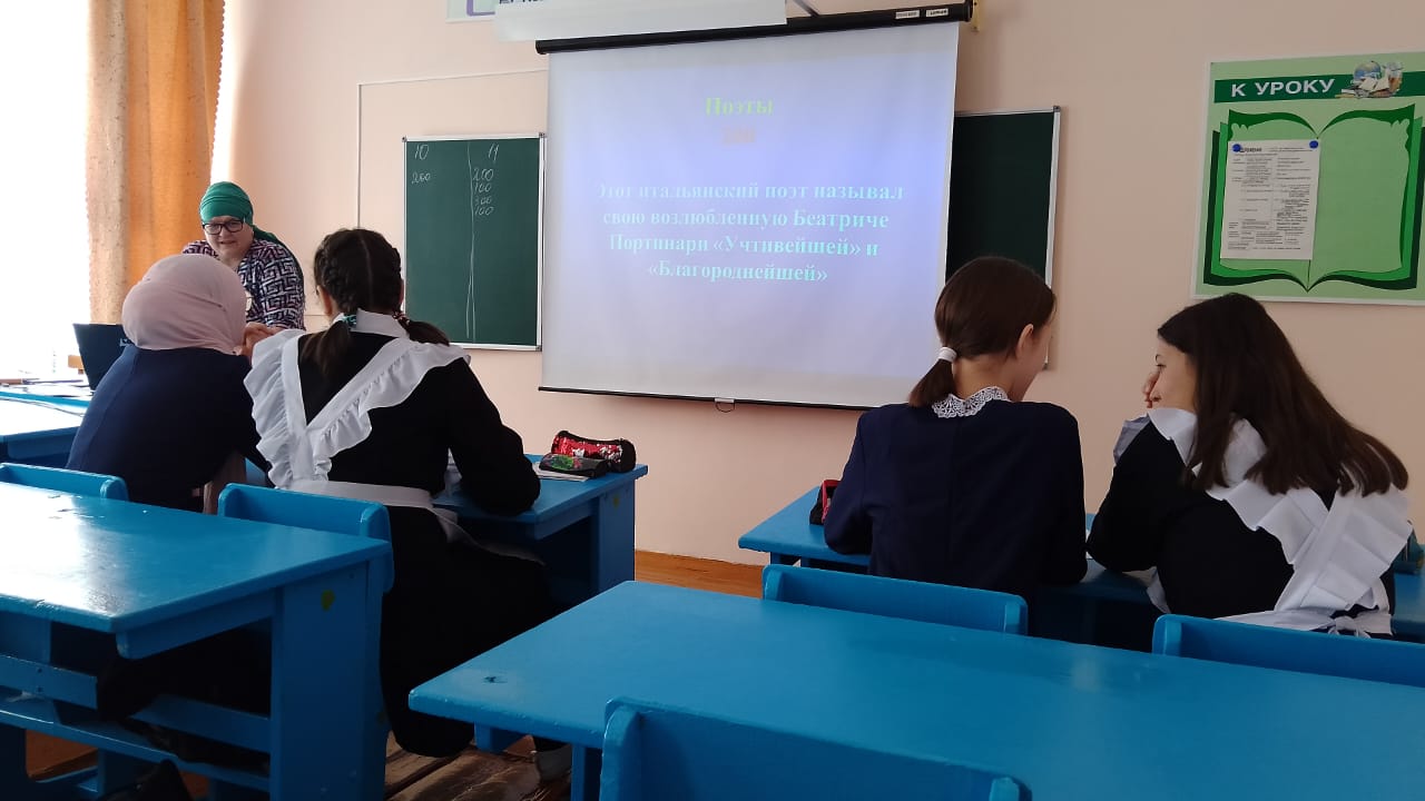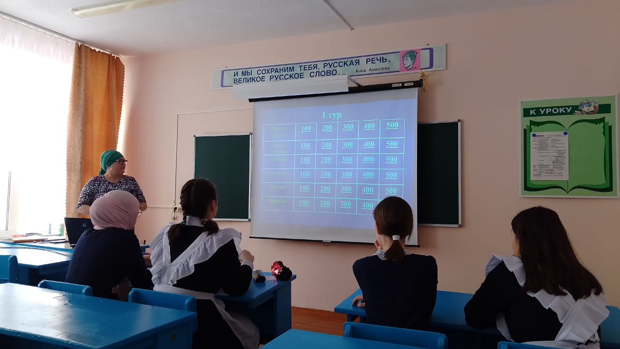 Рус теле һәм әдәбияты атналыгы кысаларында Җиһаншина Рузалия Мәгъсүм кызы 10-11 сыйныф укучылары белән әдәбияттән "Своя игра" исемендәге сыйныфтан тыш чара-ярыш үткәрде. Ә 6 класс укучылары белән "Сыйфатларның суффиксларында бер һәм ике "н" хәрефе" темасына ачык дәрес үткәрде.