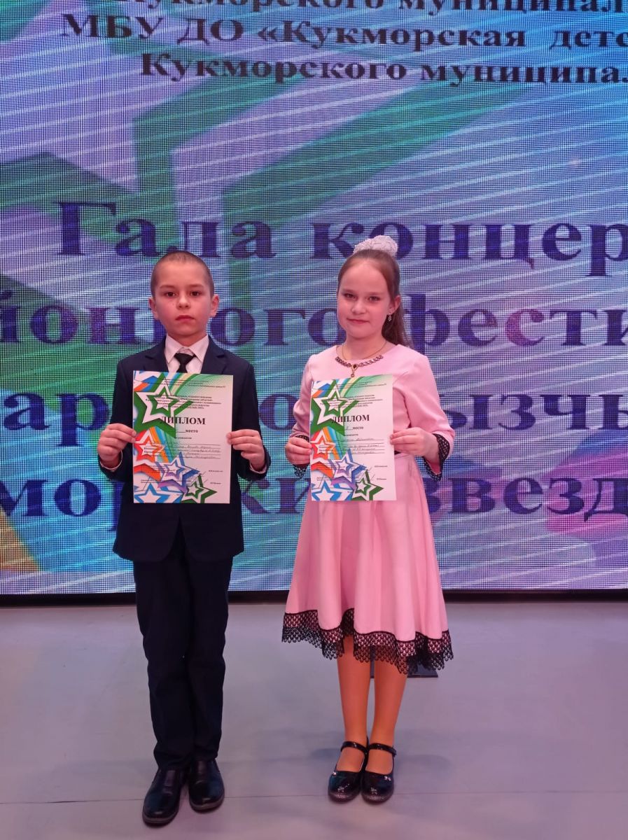 Районкүләмендә "Созвездие-Йолдызлык" кысаларында үткәрелгән "Кукмара йолдызчыклары" фестивалендә вокал-соло номинациясендә 3 нче дәрәҗә диплом белән "Рәхмәтлемен Ходаема" җыры белән Гайнуллина Зөлфинә, ә вокал-ансамбль номинациясендә "Балачак" дуэты (Шамсутдинов Сәмир, Валиева Айзилә) "Замела метелица город мой" җыры белән шулай ук 3 нче дәрәҗә диплом белән бүләкләнделәр. Җитәкчеләре һәм номерларны сәхнәгә куючы Хамидуллина Г.М.