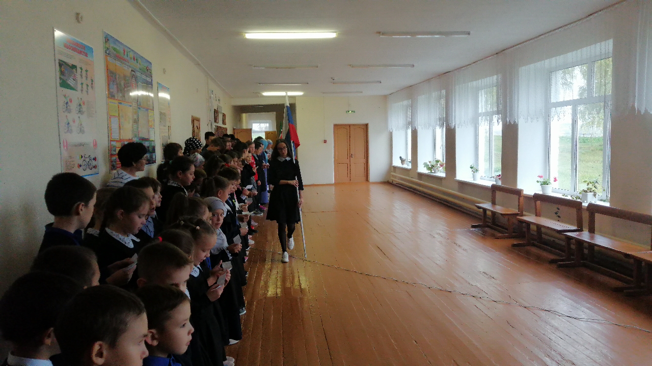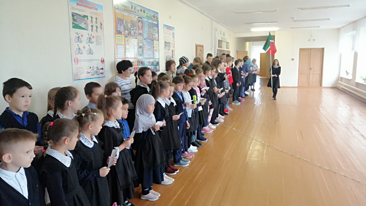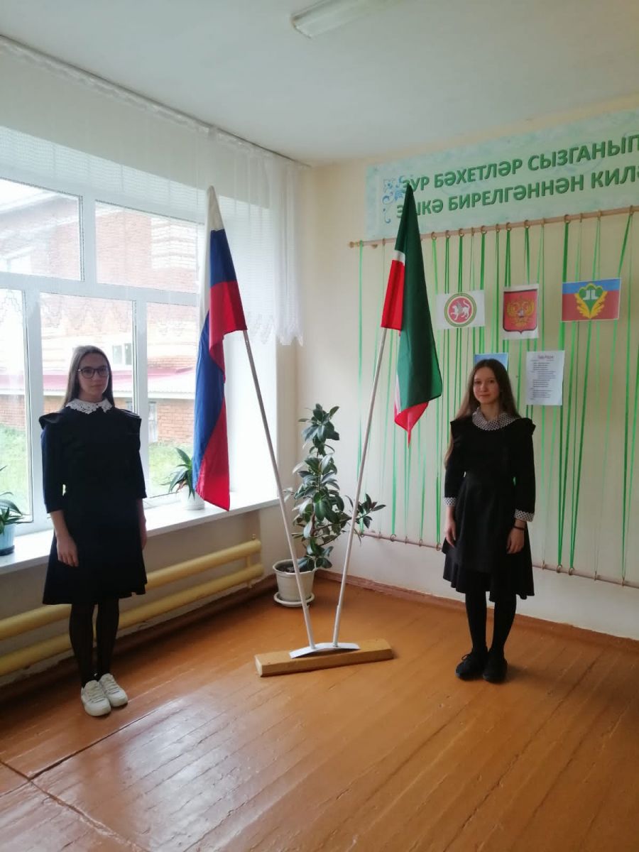 Һәр дүшәмбе мәктәбебездә РФ һәм РТ дәүләт флагларын күтәрү һәм дәүләт гимнын башкару йоласы үтә.