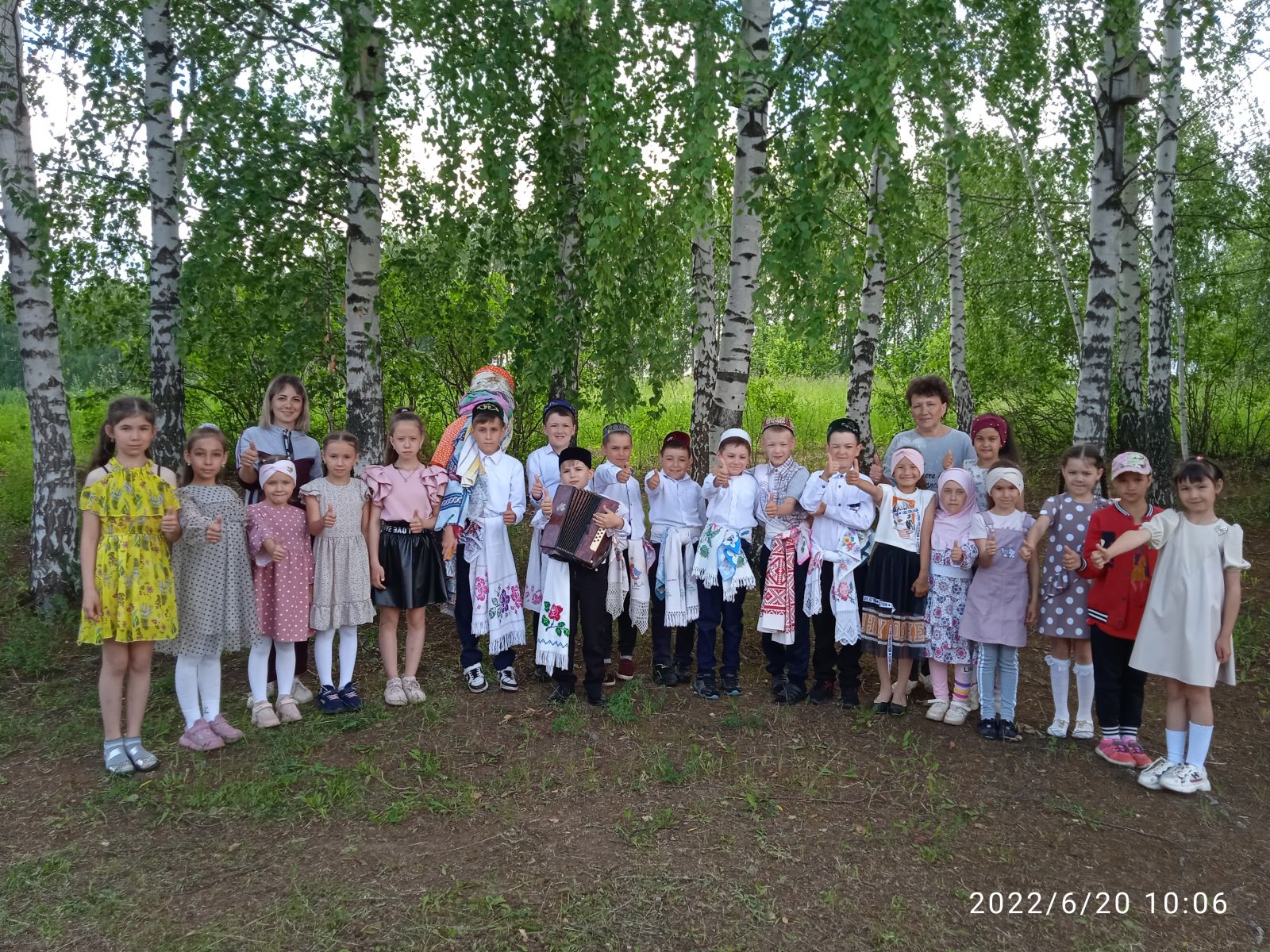 Лагерь-2022 - 20-й день. Традиционный для Кошкинского поселения национальный праздник "Сөрән" прошел сегодня в нашем лагере. Мальчики в белых рубахах, тюбетейках, расшитых на поясах полотенцах, собирали с девочек вышитые платочки.