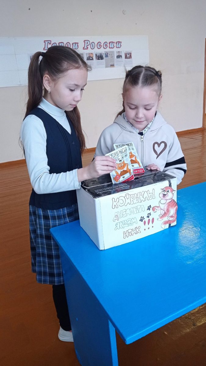 Лидер Движения первых по волонтерству Валиева Аделя организовала помощь приюту для кошек в г. Вятские Поляны. Учащиеся начальных классов охотно включились в эту работу.