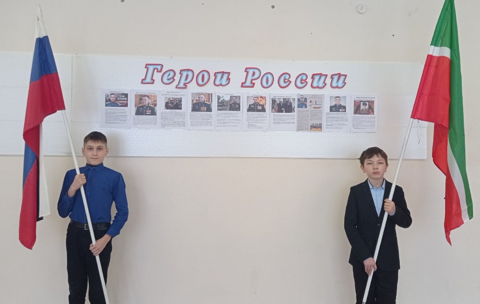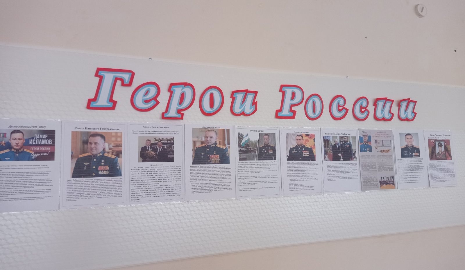 Беренчеләр хәрәкәтенең "Ватанга хезмәт" һәм "Алда бул һәм җиң" өлкәләре лидерлары "Рәсәй Геройлары" стендын булдырдылар. Әлеге эш барлык сыйныф укучылары һәм сыйныф җитәкчеләре ярдәме белән башкарылды.