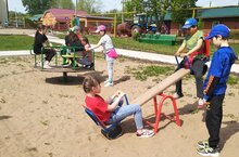День прошел отлично, разучивали песни, играли разные игры на свежем воздухе, участвовали в эстафете с препятствиями.