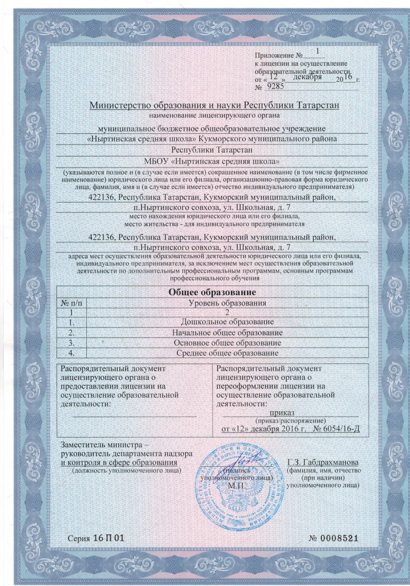 Приложение к лицензии (МБОУ "Ныртинская средняя школа")
