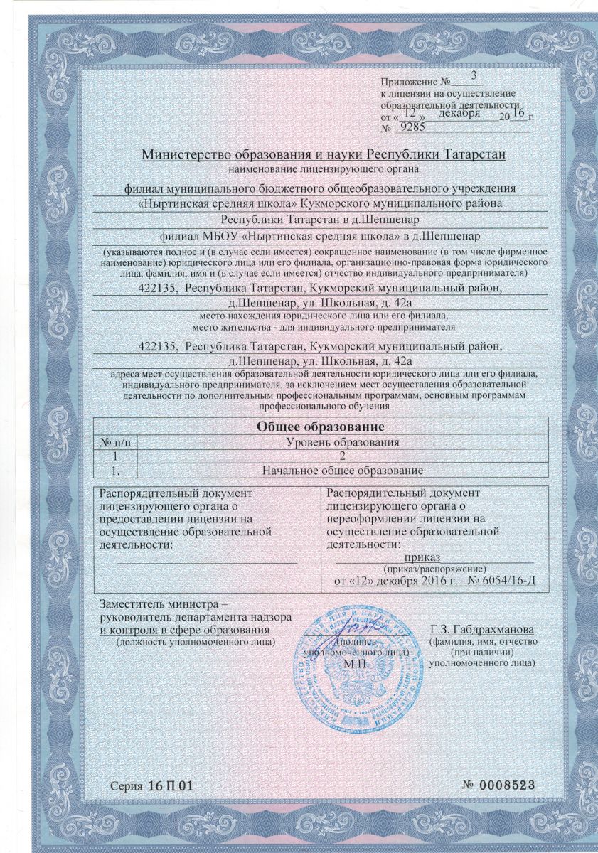 Приложение к лицензии (МБОУ " Ныртинская средняя школа" в д. Шепшенар)