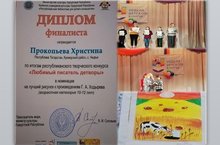 2 апреля г.Ижевске состоялось награждение республиканского творческого конкурса "Любимый писатель детворы". Прокопьева Христина получила диплом финалиста в номинации " Лучший рисунок к произведениям Г. А. Ходырева". Поздравляем Христину с победой и желаем ей дальнейших успехов.