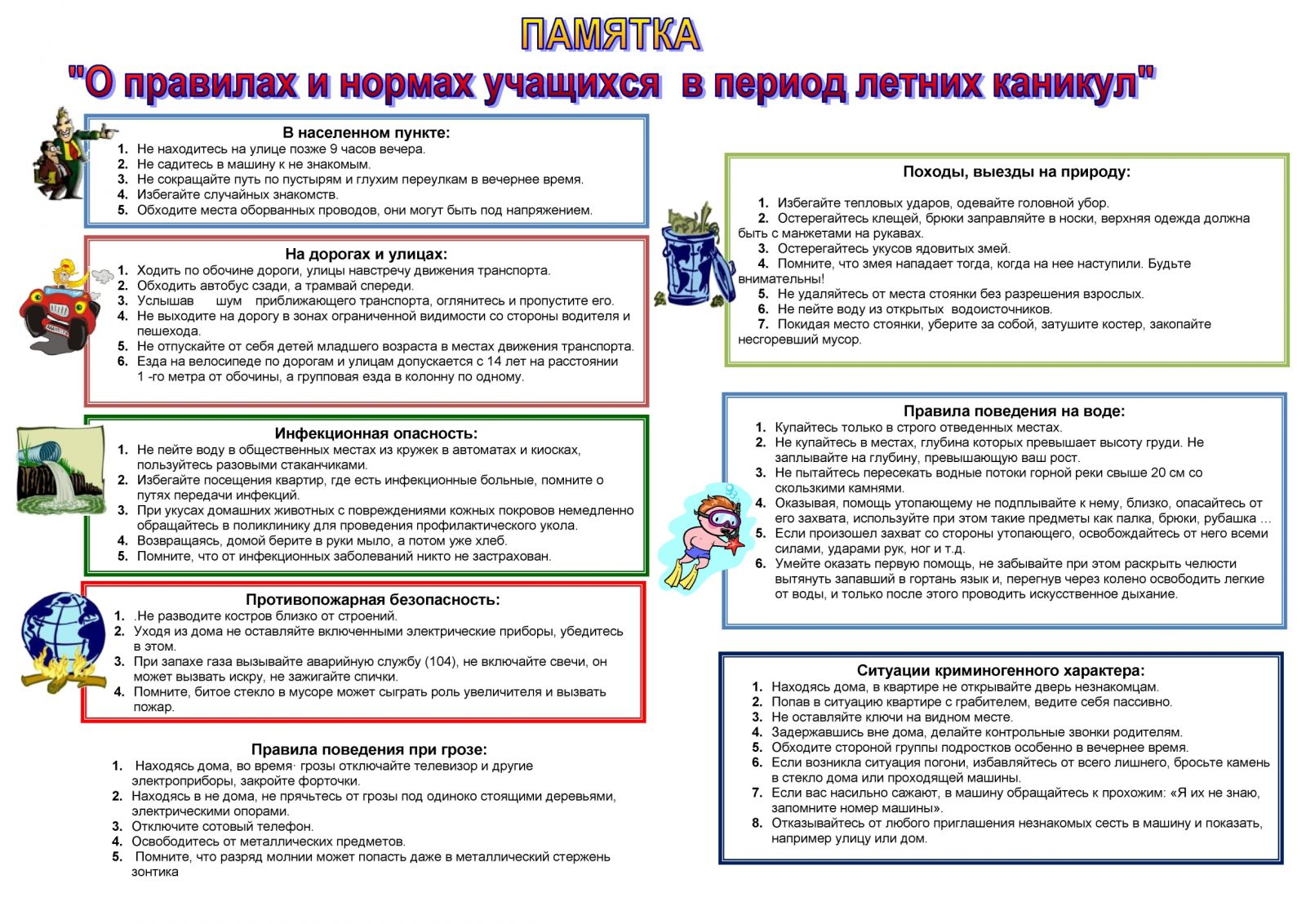 ►Памятка о правилах и нормах учащихся в период летних каникул