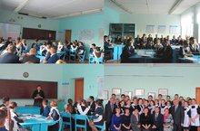 Учитель истории и обществознания Галимьянова Л. В. для учащихся 9-11 классов в рамках месячника правового просвещения провела круглый стол на тему: «Отличие преступления от проступка». На мероприятие был приглашен участковый полицейский Кусаев В. А. -