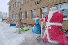 На праздник Новый год украсили территорию школы Снежными фигурами. Заняли первое место в новогоднем оформлении территории школы среди образовательных школ района.