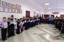 Поздравление участников и победителей конкурса «Русский медвежонок», «КИТ» на общешкольной линейке.