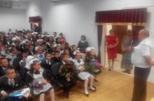 3 сентября провели урок, посвященный памяти жертв актов терроризма с приглашением старшего УУП отдела МВД России по Кукморскомурайону майора полиции Шакирова Р.Р.. Он рассказал об опасности терроризма, призывал быть бдительными и объяснял, как вести себя в таких случаях. В мероприятии участвовали 130 учащихся и 23 преподаватели.